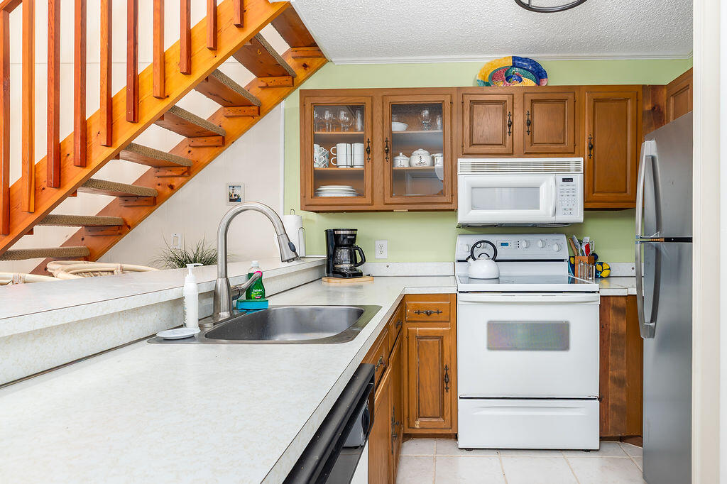 Chef-Ready Kitchen: Fully equipped with a stove, dishwasher, microwave, and coffee maker. Perfect for whipping up big breakfasts before hitting the waves!