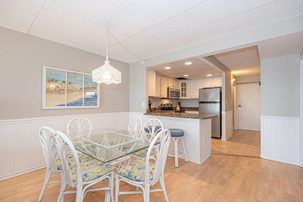 Wake up to the sunrise over the ocean from the master bedroom. Enjoy the private sliding glass door access from your bedroom balcony which also adjoins to the living area. This 2 bedroom, 2 bathroom end unit features an open concept living area full of natural light. Stay cool with central AC and enjoy the convenience of a fully equipped kitchen with ample storage throughout. Take a refreshing dip in the outdoor pool or enjoy one of the many local restaurants nearby, this property has the perfect central location. This property offers flexible booking with a 3 night minimum so the booking options are endless while sleeping 8 comfortably.