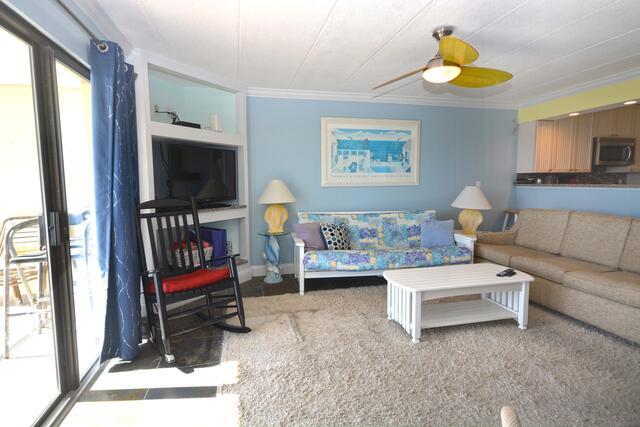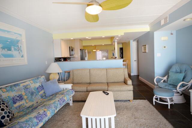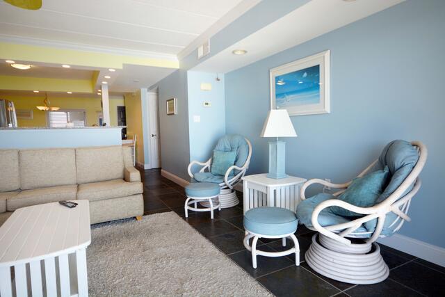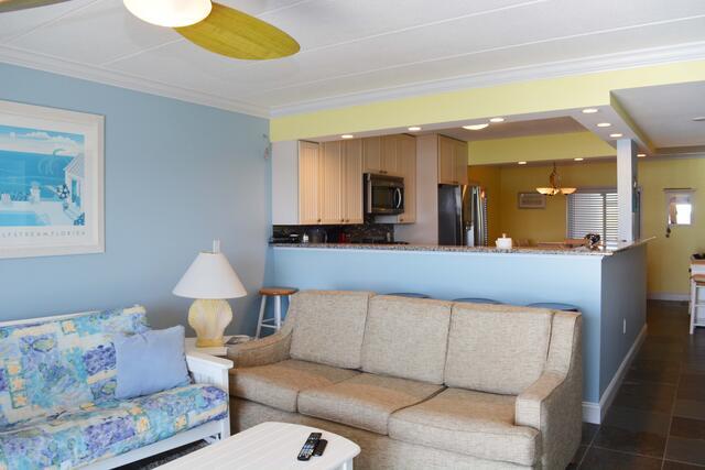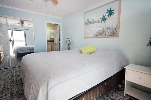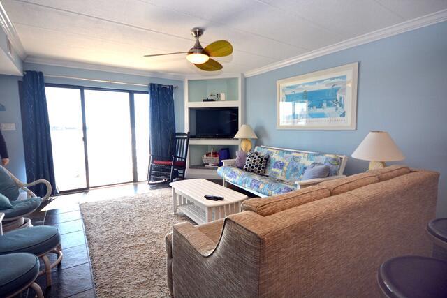 The blue hues in the light, airy living room with comfortable furnishings, plenty of seating to enjoy the beauitful open bay view. The sliding balcony doors allow plenty of natural light to brighten the space. Right off the living room is a dining area, perfect for meals with the family. The master bedroom has a king size bed, a private bathroom with access to the balcony. The second bedroom has a double bed and a set of bunk beds. The second bathroom is located in the hallway. This property comfortably sleeps up to six people, so bring the whole family!