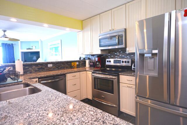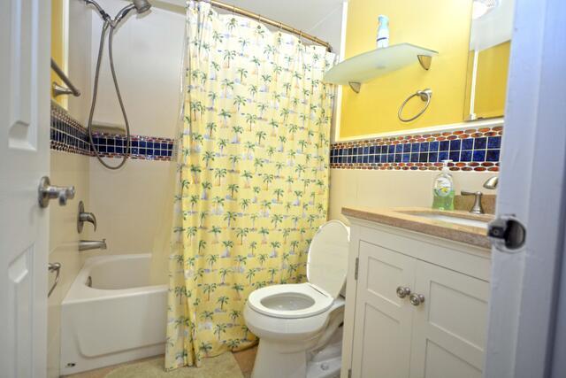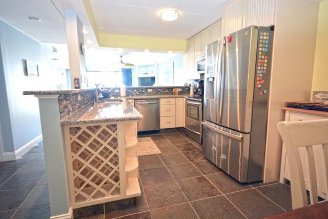 Unit 2B has the following amenities: central air conditioning, one parking space, two TVs, free WiFi, cable TV, heat, stack washer and dryer, refrigerator, ice maker, microwave, coffee maker, toaster, stove, disposal, dishwasher, and an outdoor foot shower.