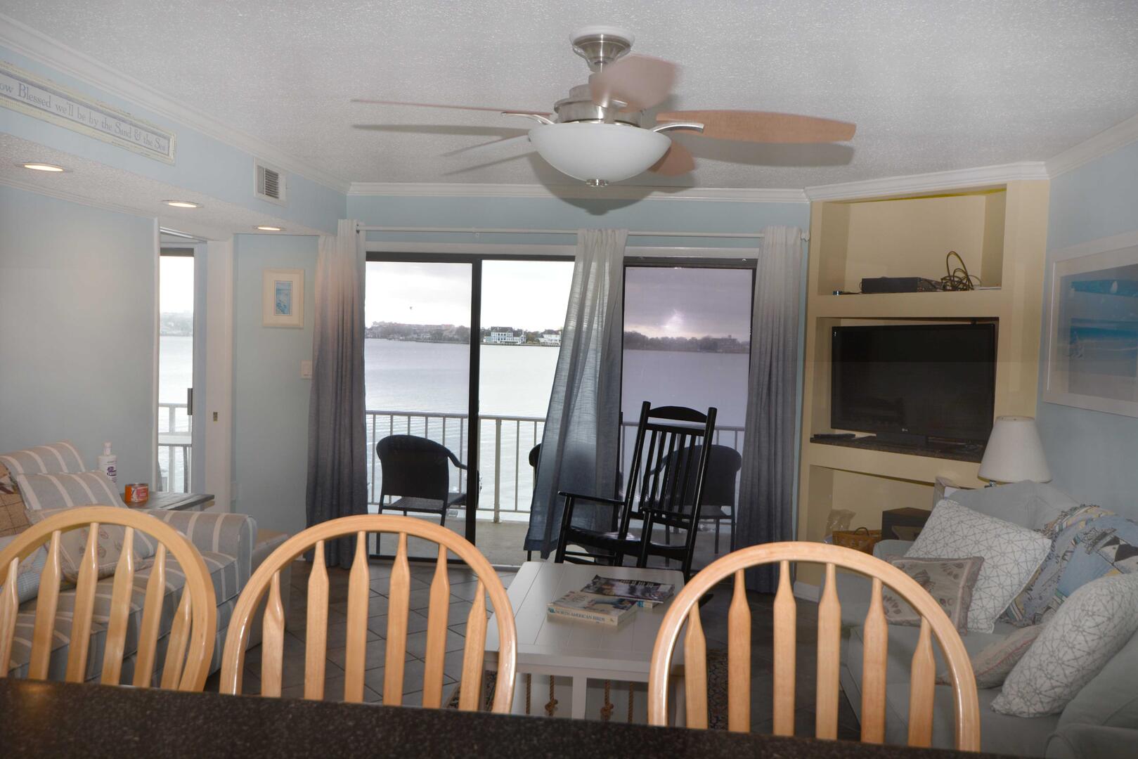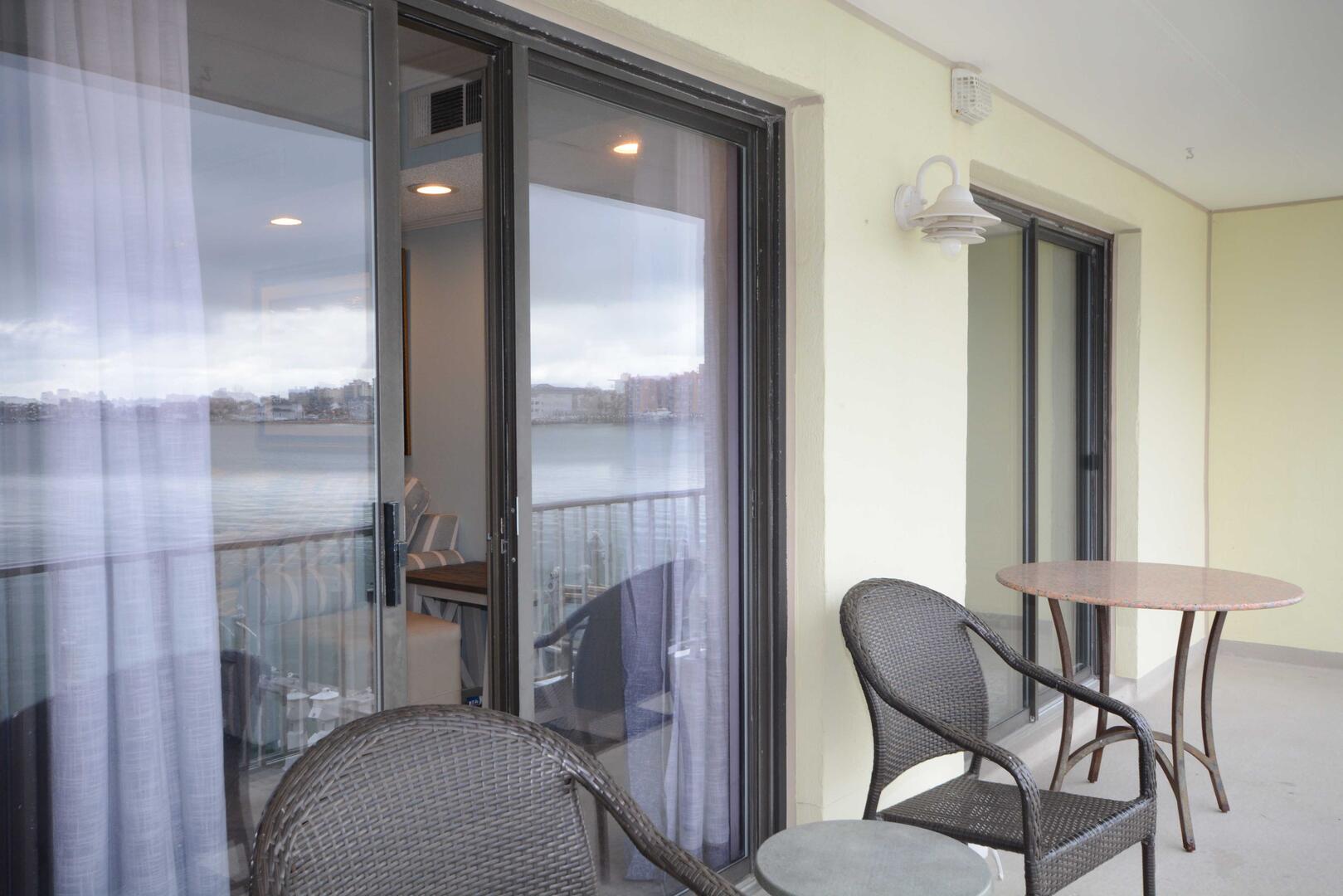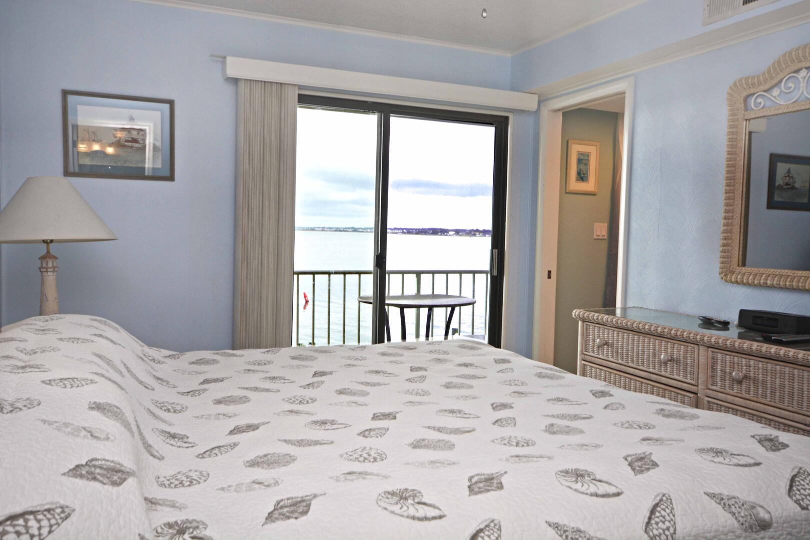 The blue hues in the light, airy living room with comfortable furnishings, plenty of seating to enjoy the beautiful open bay view. The sliding balcony doors allow plenty of natural light to brighten the space. Right off the living room is a dining area, perfect for meals with the family. The master bedroom has a king size bed, a private bathroom with access to the balcony. The second bedroom has a double bed and a set of bunk beds. The second bathroom is located in the hallway. This property comfortably sleeps up to six people, so bring the whole family!