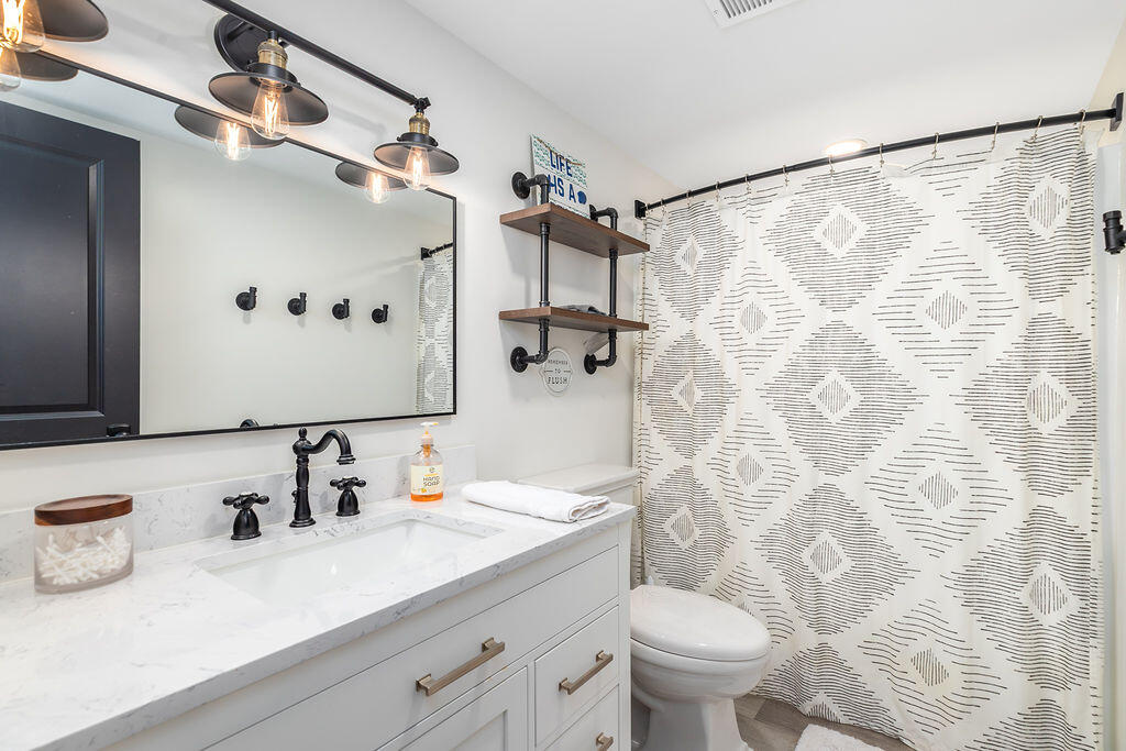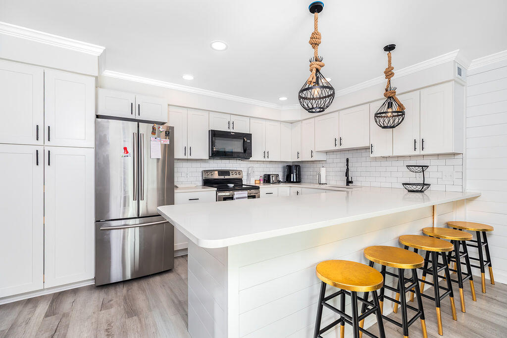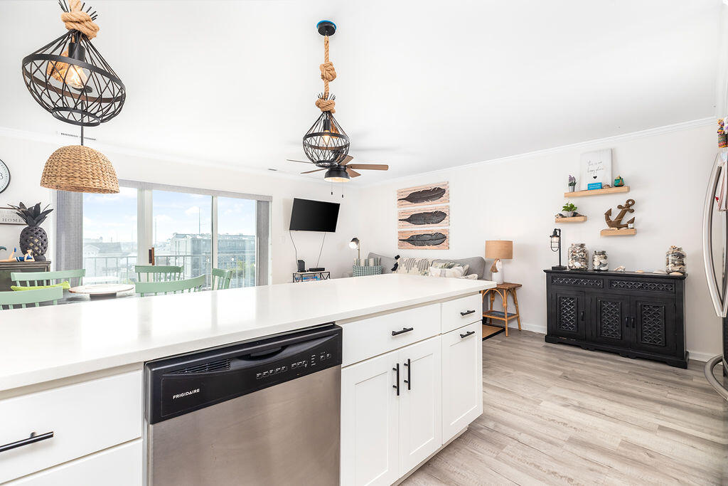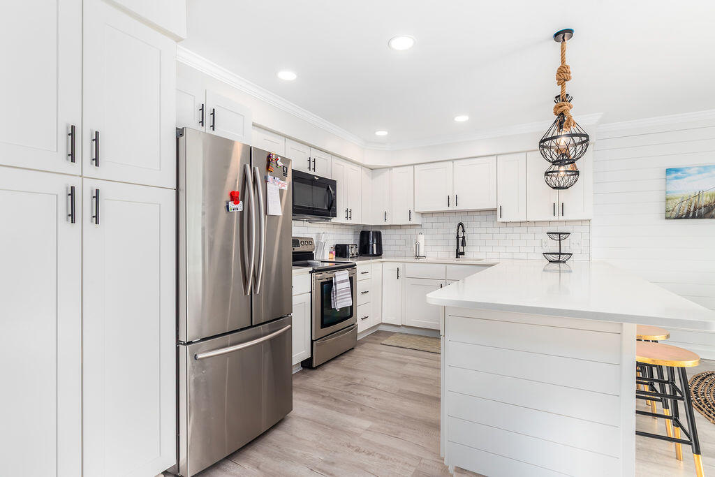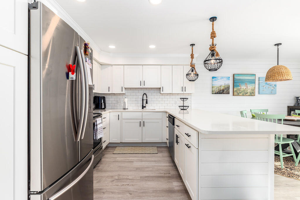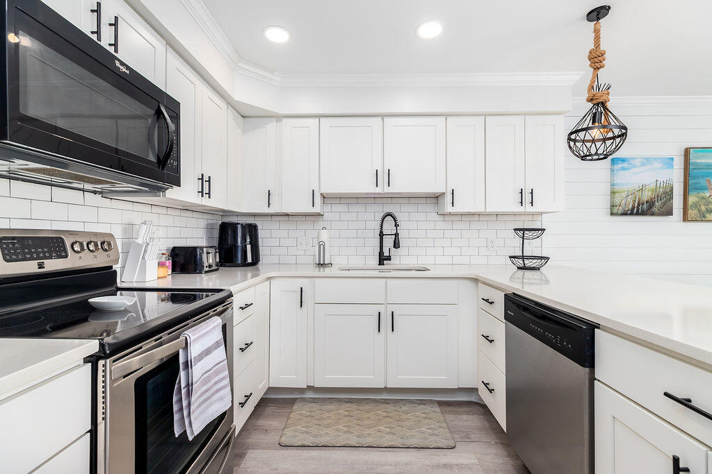 • Chef-Ready Kitchen: A fully stocked kitchen with wide countertops makes it easy to whip up a pancake breakfast or serve a quick snack between beach sessions.