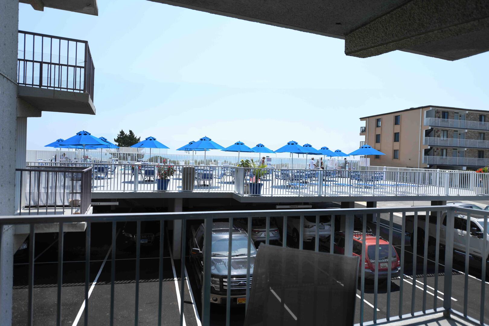 Unit 106 has the following amenities: central air conditioning, outdoor pool, Deck Tennis, sun deck, one parking space (provided at the building with a registration fee), three elevators, two TVs, Two Blue Ray VD players, and the owner provides some movies, WiFi, cable TV, full-size washer and dryer, refrigerator, microwave, coffee maker, toaster, stove, disposal, dishwasher and an outdoor foot shower.