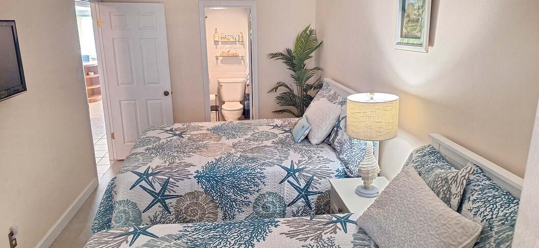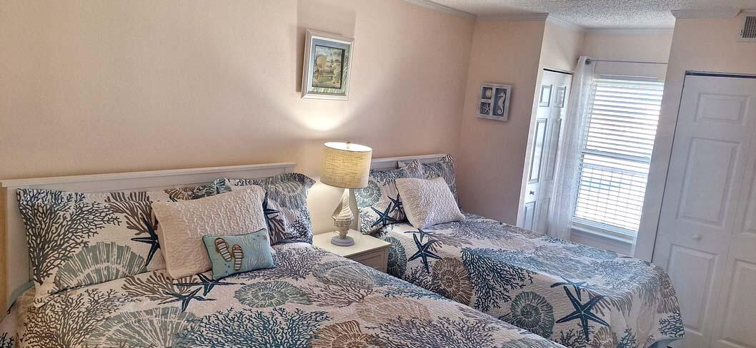 After a fun-filled day in the sun, retreat to one of the comfortable bedrooms, which offer flexible sleeping arrangements with a plush king bed, two welcoming queen beds, plus extra space on the double sofa bed. For your convenience, the condo also includes helpful amenities like a washer/dryer, refreshing central AC, and internet access. And you'll have one less thing to worry about with parking available for two cars!